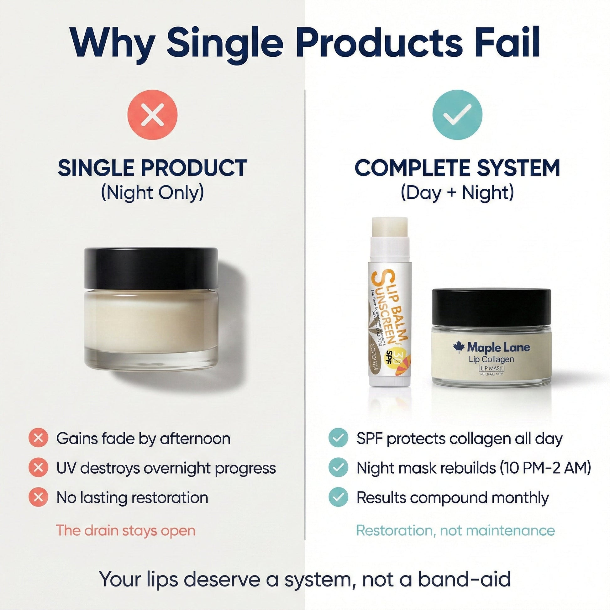 The result isn't a transformation. It's a restoration. Lips that feel like yours again. Soft, smooth, and protected every single day.