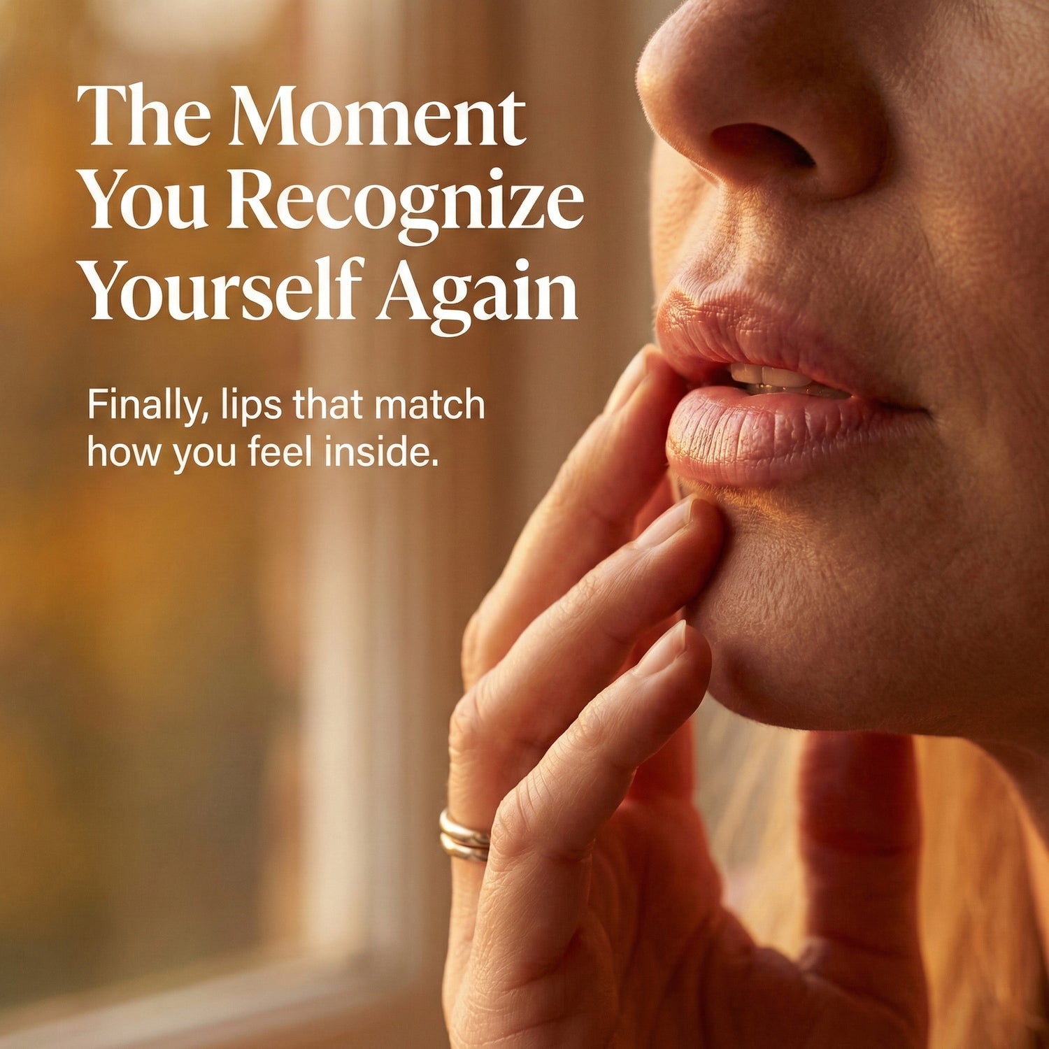 The only day/night lip system designed for women 40+ who want visible restoration without looking "done." Clinical peptides rebuild collagen while SPF protects it. Results appear gradually, look entirely natural, and feel like rediscovering yourself. No needles. No burning. Just your lips, the way you remember them.